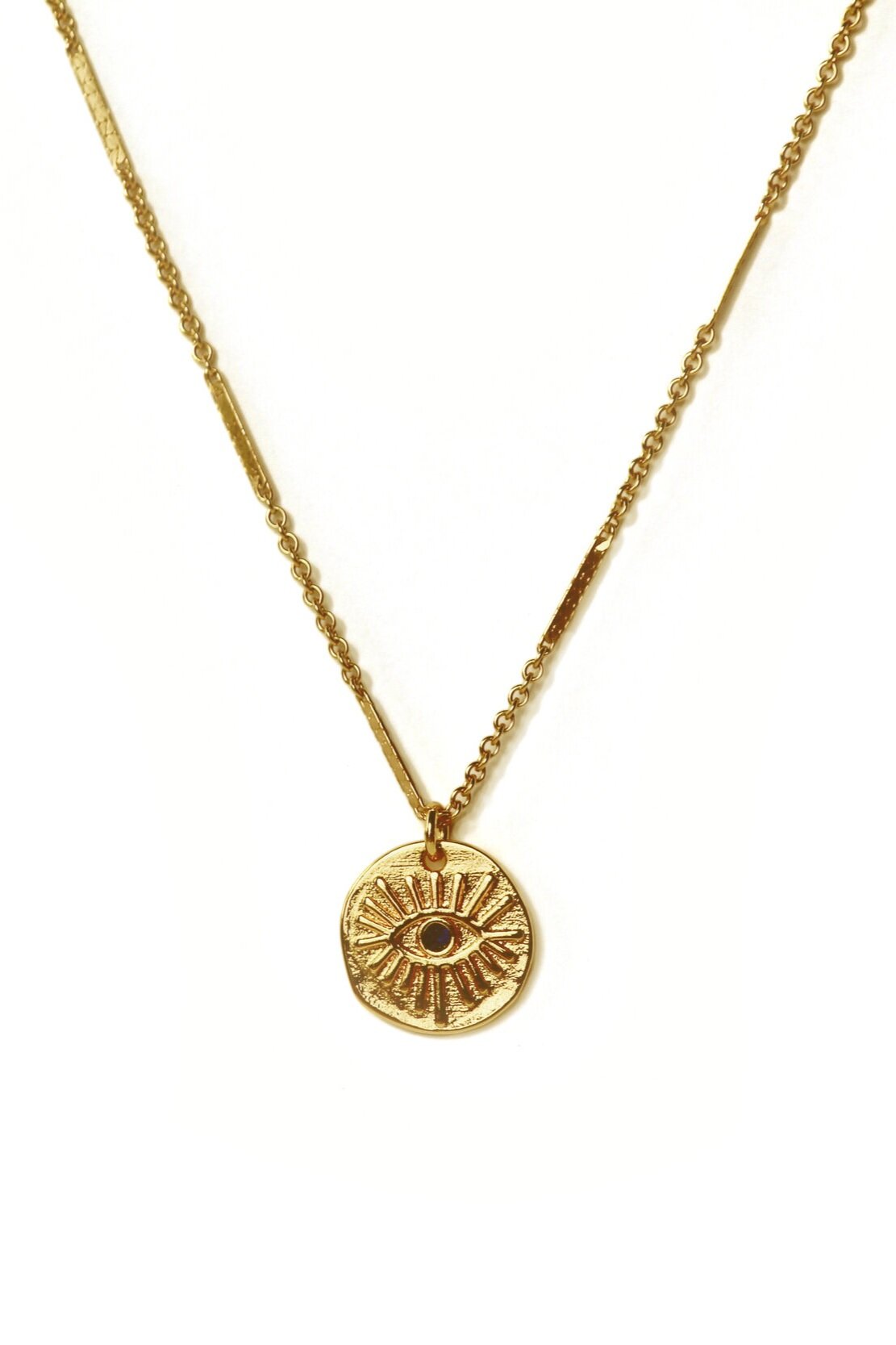 Adorned with an 18K Gold-Filled Evil Eye Pendant with Blue Sapphire Accent