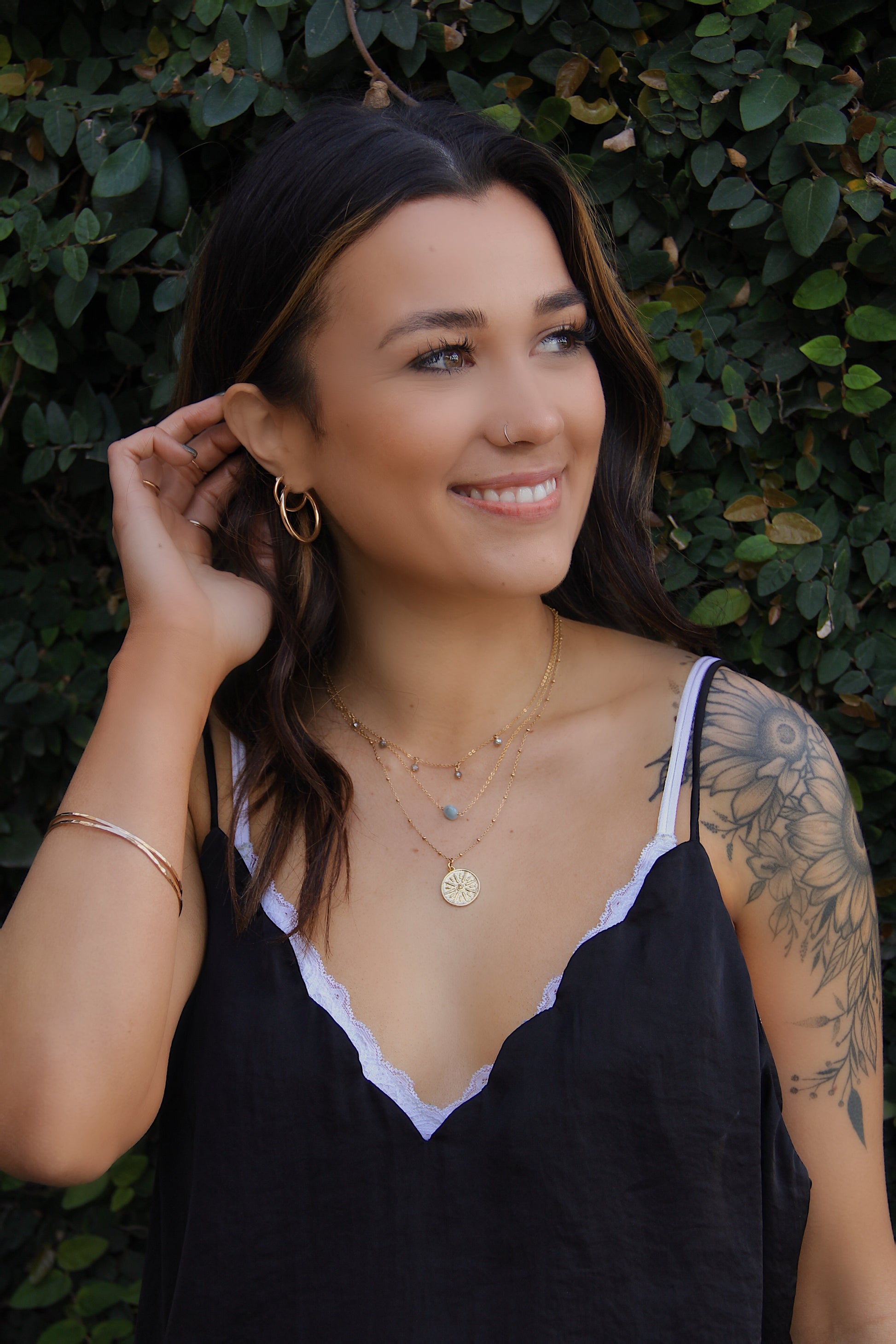Gemstone Options include: Aquamarine, Black Onyx, Blue Sapphire, Clear Moonstone, Green Tourmaline, and Labradorite. Available at checkout.