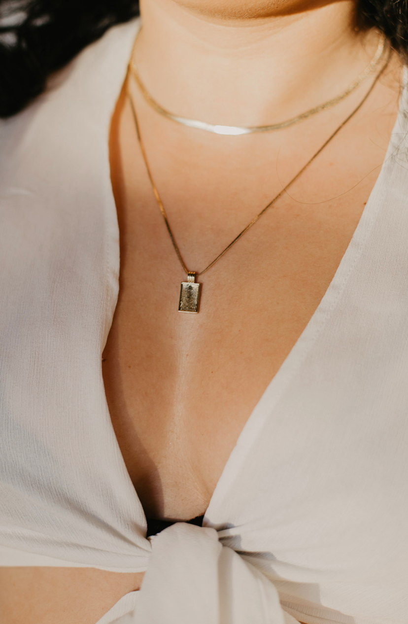 The sun represents the divine masculine. Balance that Shiva energy with this captured sunburst necklace.